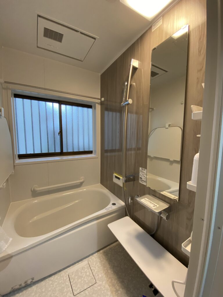 浴室、洗面所の水回りを丸ごとリフォームし、 同じスペースでも浴室は広くなり、 洗面は収納がたっぷりのおしゃれ空間に 手すりなどの機能も向上しています。